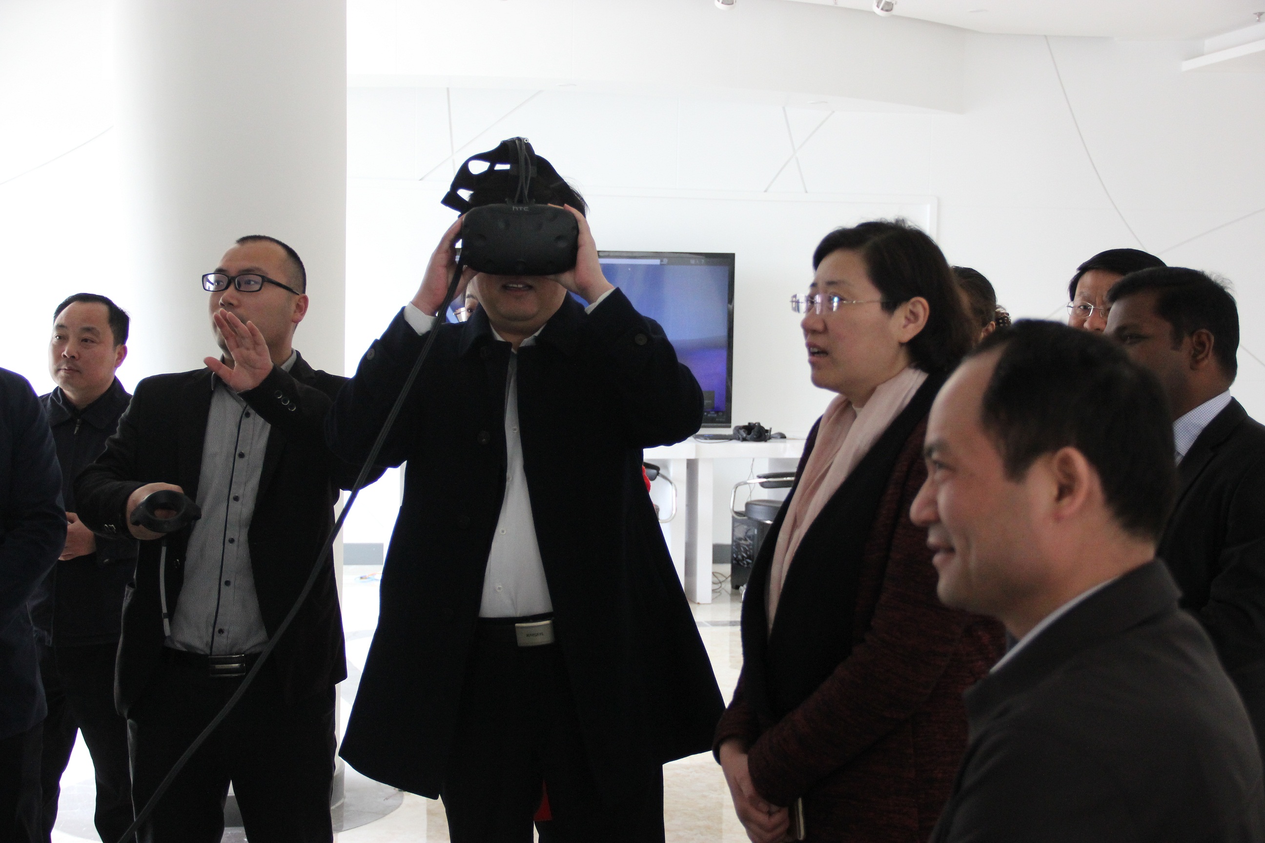 陳一兵書記一行實地參觀了研發(fā)中心、國際技術(shù)交流中心、研發(fā)中心電教室,認真聽取了董事長王嵐保關(guān)于公司發(fā)展情況的介紹,親身體驗了VR教室,觀看了臨沂市智慧教育云平臺的演示,對云計算、大數(shù)據(jù)、公共服務(wù)云平臺等方面取得的成績給予了肯定,對智慧教育云平臺等研發(fā)成果給予了高度認可。