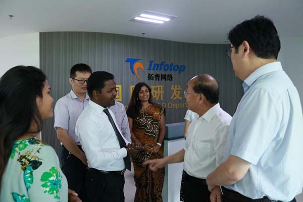 李喆書記一行聽取產(chǎn)品介紹 在拓普公司董事長王嵐保的陪同下,李喆一行先后參觀了園區(qū)研發(fā)中心、臨沂大數(shù)據(jù)中心、山東智慧教育信息化應(yīng)用能力培訓(xùn)基地、山東智慧教育創(chuàng)客活動中心、國際研發(fā)中心等地。在山東智慧教育信息化應(yīng)用能力培訓(xùn)基地,李喆書記一行聽取了董事長王嵐保關(guān)于“拓普智慧教育云平臺”、“和博士學(xué)業(yè)測評系統(tǒng)”兩款公司產(chǎn)品的詳細(xì)匯報。