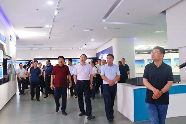(考察團(tuán)參觀展廳) 七月四日上午,日照市人社局及直屬事業(yè)單位的考察團(tuán)到國家中印科技國際創(chuàng)新園參觀考察。臨沂市經(jīng)濟(jì)技術(shù)開發(fā)區(qū)黨工委副書記、管委會副主任徐立峰,臨沂市人社局副局長、黨組成員王君川陪同。