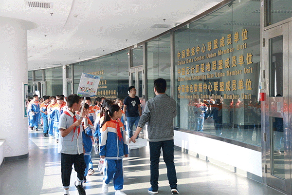 天氣雖然逐漸轉(zhuǎn)涼,但是依然抵擋不住同學(xué)們對(duì)創(chuàng)客教育這一新鮮事物的熱情。剛一大早,同學(xué)們就在帶隊(duì)老師及園區(qū)工作人員的帶領(lǐng)下分成數(shù)個(gè)參觀小組,踏著整齊劃一的步伐有序參觀園區(qū)展廳、研發(fā)中心、山東智慧教育教育創(chuàng)客活動(dòng)中心等地。宏幕全景電影、VR/AR體驗(yàn)設(shè)備、3D打印器材等等一應(yīng)俱全的高科技設(shè)備帶同學(xué)們走進(jìn)了一個(gè)課堂上接觸不到的世界。