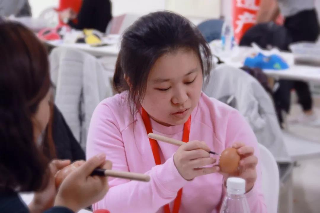 蛋雕是在飛禽類(lèi)蛋殼上刻琢成畫(huà)的一種民間手工藝品,用雕刀在表面顏色較深的蛋殼上雕刻出各種人物、山水、花鳥(niǎo)等圖案。蛋雕的制作難度稍微高一些,來(lái)自查爾斯福果中學(xué)的學(xué)生們小心翼翼的雕刻著自己的作品。