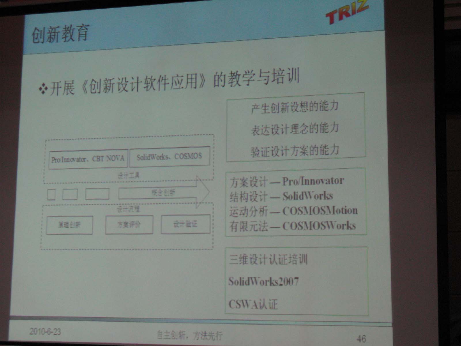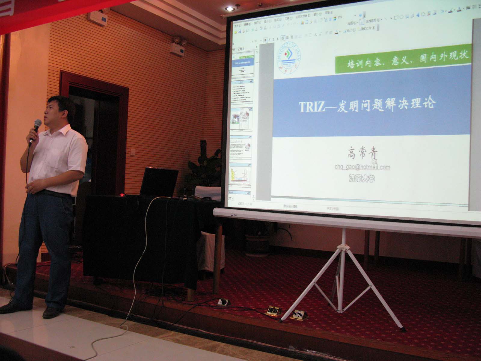 為加快推廣創(chuàng)新方法,622日至24日,山東省科技廳在濟南賓館舉辦創(chuàng)新方法師資培訓(xùn)班,來自全省17市科技系統(tǒng)、有關(guān)高校、科研機構(gòu)、企業(yè)等單位,具備一定基礎(chǔ)并經(jīng)過資格審查的100多名學(xué)員參加了培訓(xùn)。我公司委派技術(shù)總監(jiān)張金剛經(jīng)理和技術(shù)部趙振彪經(jīng)理參加了這次培訓(xùn)。