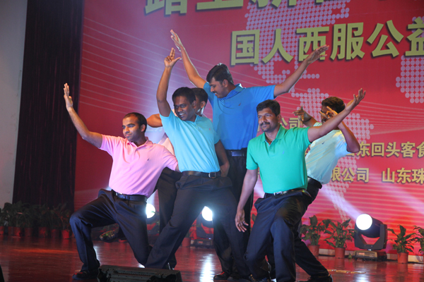 現(xiàn)場(chǎng)節(jié)目精彩紛呈,氣氛歡樂(lè)祥和?!妒⑹阑ㄩ_(kāi)》拉開(kāi)了晚會(huì)的序幕,其中,公司印度專(zhuān)家表演的舞蹈《江南Style》形式獨(dú)特、歡樂(lè)幽默,將晚會(huì)推向了高潮,大家隨著騎馬舞歡快的節(jié)奏歡呼喝彩。最后,晚會(huì)在《我的家鄉(xiāng)飛出一支歌》的優(yōu)美歌舞中落下帷幕。