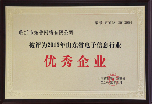 在省信息產(chǎn)業(yè)協(xié)會(huì)組織的2013年“山東省電子信息產(chǎn)業(yè)優(yōu)秀企業(yè)”評(píng)選表彰活動(dòng)中,公司脫穎而出,榮獲2013年山東省電子信息行業(yè)優(yōu)秀企業(yè),這是繼“山東省創(chuàng)新型民營(yíng)企業(yè)”以來(lái),公司于本年度斬獲的又一省級(jí)重要獎(jiǎng)項(xiàng)。
