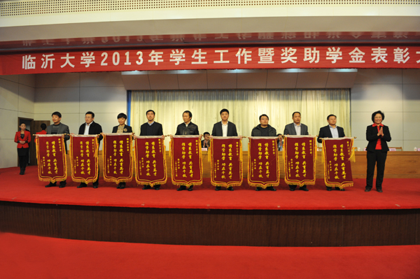 12月18日下午,臨沂大學(xué)隆重舉行了“2013年學(xué)生工作暨獎(jiǎng)(助)學(xué)金表彰大會(huì)”,副總經(jīng)理曹磊代表公司作為捐資助學(xué)單位出席此次大會(huì),接受臨沂大學(xué)黨委書(shū)記丁鳳云贈(zèng)送的錦旗,并為獲獎(jiǎng)學(xué)生代表頒獎(jiǎng)。