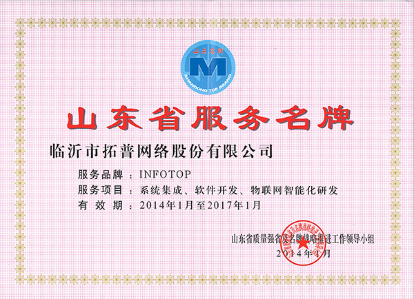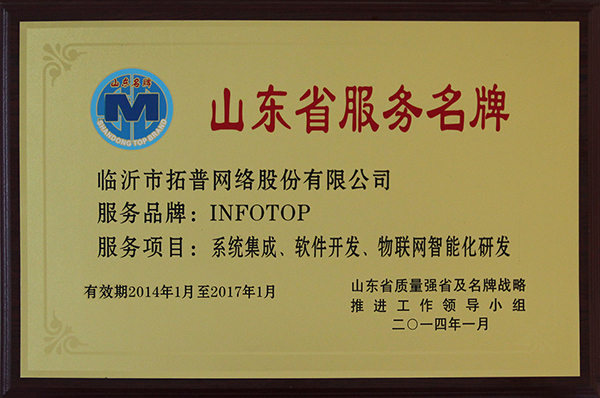 近日,山東省質(zhì)量強省及名牌戰(zhàn)略推進工作領(lǐng)導小組授予公司“2013年山東省服務(wù)名牌”稱號,標志著公司在系統(tǒng)集成、軟件開發(fā)、物聯(lián)網(wǎng)智能化研發(fā)等領(lǐng)域的服務(wù)質(zhì)量、服務(wù)管理及服務(wù)體系建設(shè)得到了省有關(guān)部門的認同,也標志著公司“以質(zhì)量立身、以服務(wù)立命”的經(jīng)營宗旨得到了廣大用戶和社會各界的認可。