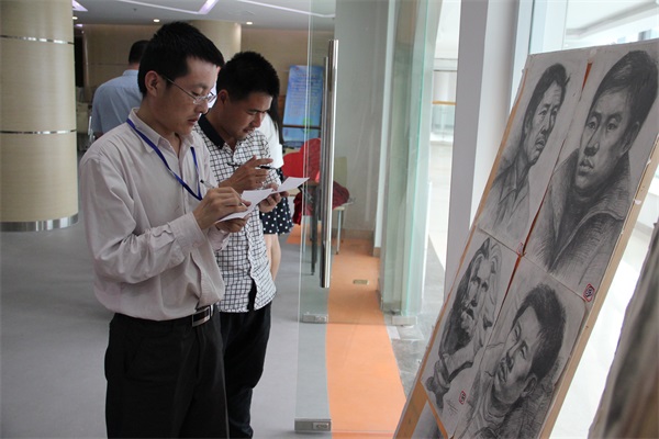 2015年6月1日, 中印軟件產(chǎn)業(yè)園首屆“妙手丹青”藝術(shù)作品展在五樓活動(dòng)室正式拉開帷幕,來自各入園企業(yè)員工精心準(zhǔn)備的70多幅作品現(xiàn)場(chǎng)展出,其中,有書法作品、繪畫作品、十字繡、攝影、郵票等一切可展示的原創(chuàng)藝術(shù)作品,書法既有臨摹各類優(yōu)秀書帖,又不乏出色的創(chuàng)作;繪畫則囊括了國(guó)畫、創(chuàng)意繪畫、素描、油畫等多種類型,內(nèi)容各具特色,又相互呼應(yīng)。此次展出還有9名小朋友的作品,有字帖臨摹、有水墨畫、還有水彩畫,內(nèi)容豐富多彩,充滿童趣。