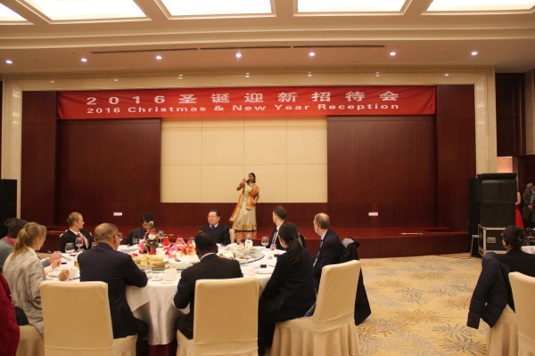 2016年12月23日,臨沂市政府2016年圣誕迎新招待會在藍(lán)海酒店舉行,公司印度、烏克蘭、俄羅斯等國的外籍專家受邀參加。 待會上,與會領(lǐng)導(dǎo)與海外高層次人才歡聚一堂,暢敘友情,共謀發(fā)展。公司副總經(jīng)理巴布代表外國專家講話,印度專家卡帕娜奉獻(xiàn)了精美絕倫的歌舞表演。