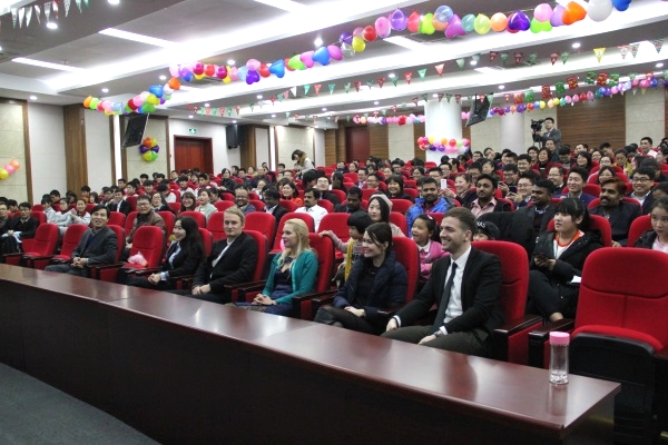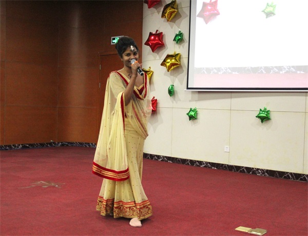 華北電力學生表演韓國打氣舞 聯(lián)歡會在印度專家卡帕娜《love me like you do》的優(yōu)美歌聲中拉開了序幕;公司國際合作部的外籍專家們個個多才多藝,印度民族歌曲、印度特色舞蹈、烏克蘭專家中文歌曲演唱《北京北京》等精彩節(jié)目精美絕倫;來自入園企業(yè)華北電力的學生精彩的武術表演、傳統(tǒng)曲藝表演三句半、小品《男生宿舍的蛻變》、女生舞蹈《韓國打氣舞》等讓人應接不暇;《愛是你我》、《東風破》、《我相信》、《家住臨沂》、《萍聚》、《我為親人熬雞湯》等眾多經典歌曲帶給觀眾耳朵與視覺的雙重盛宴;獨具特色的小品《新聞大播報》用幽默的語言、詼諧的畫面將時政熱點與園區(qū)工作生活相結合,讓現(xiàn)場觀眾捧腹大笑。